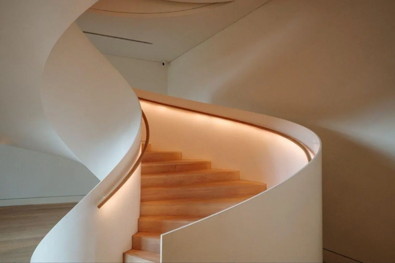 Идея для вашей лестницы: Усильте эффект «парящих» ступеней с помощью точечной подсветки, направленной на стену под каждой ступенью. Это создаст мягкое, рассеянное освещение и превратит лестницу в футуристический элемент интерьера в вечернее время.